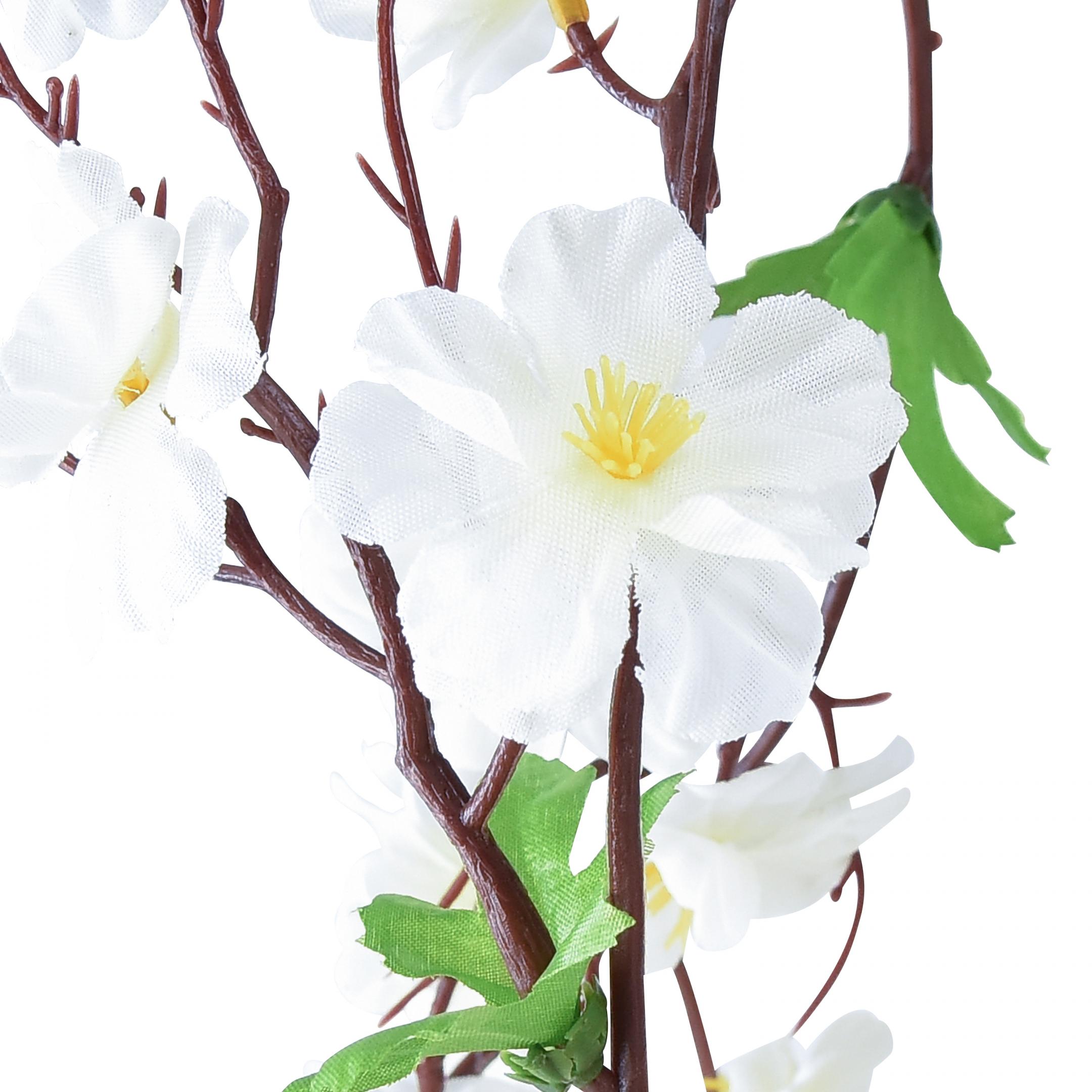 A füzér egy hosszú szálból áll, mindkét végén fűzőlyukkal, így könnyen felakasztható a dekoratív füzér. A különböző méretű, szabálytalan elrendezésű tavaszi virágok valódinak tűnnek, és nagyon természetes megjelenést kölcsönöznek a virágfüzérnek.