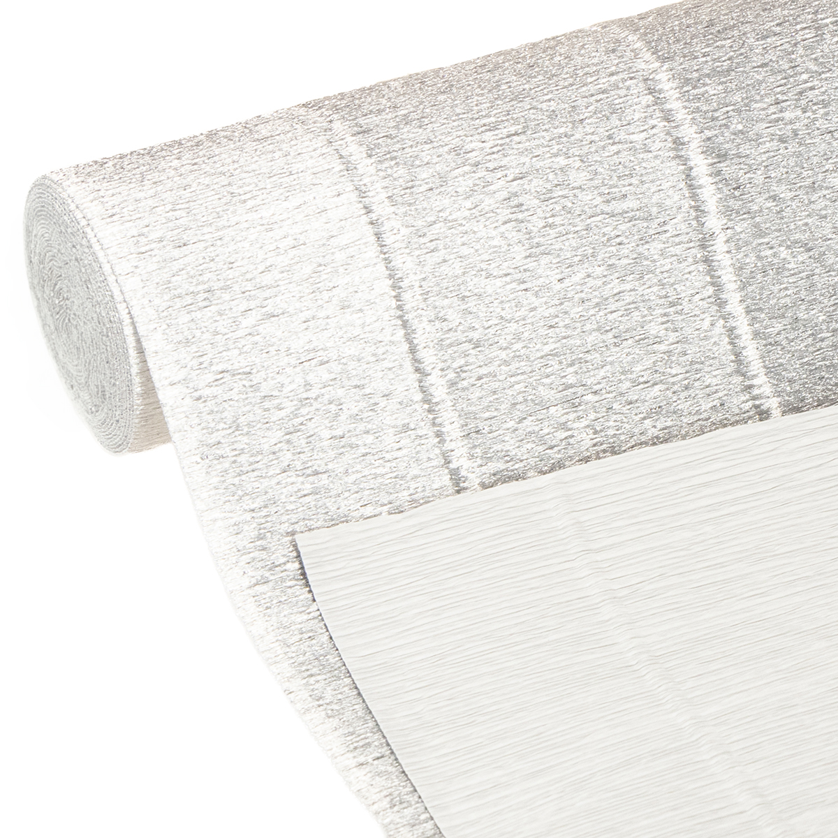 Az ezüstszínű virágüzleti krepppapírt tekercsben szállítjuk, könnyen hajtogatható, vágható és hajlítható. A díszpapír körülbelül 50 centiméter széles és 250 centiméter hosszú.