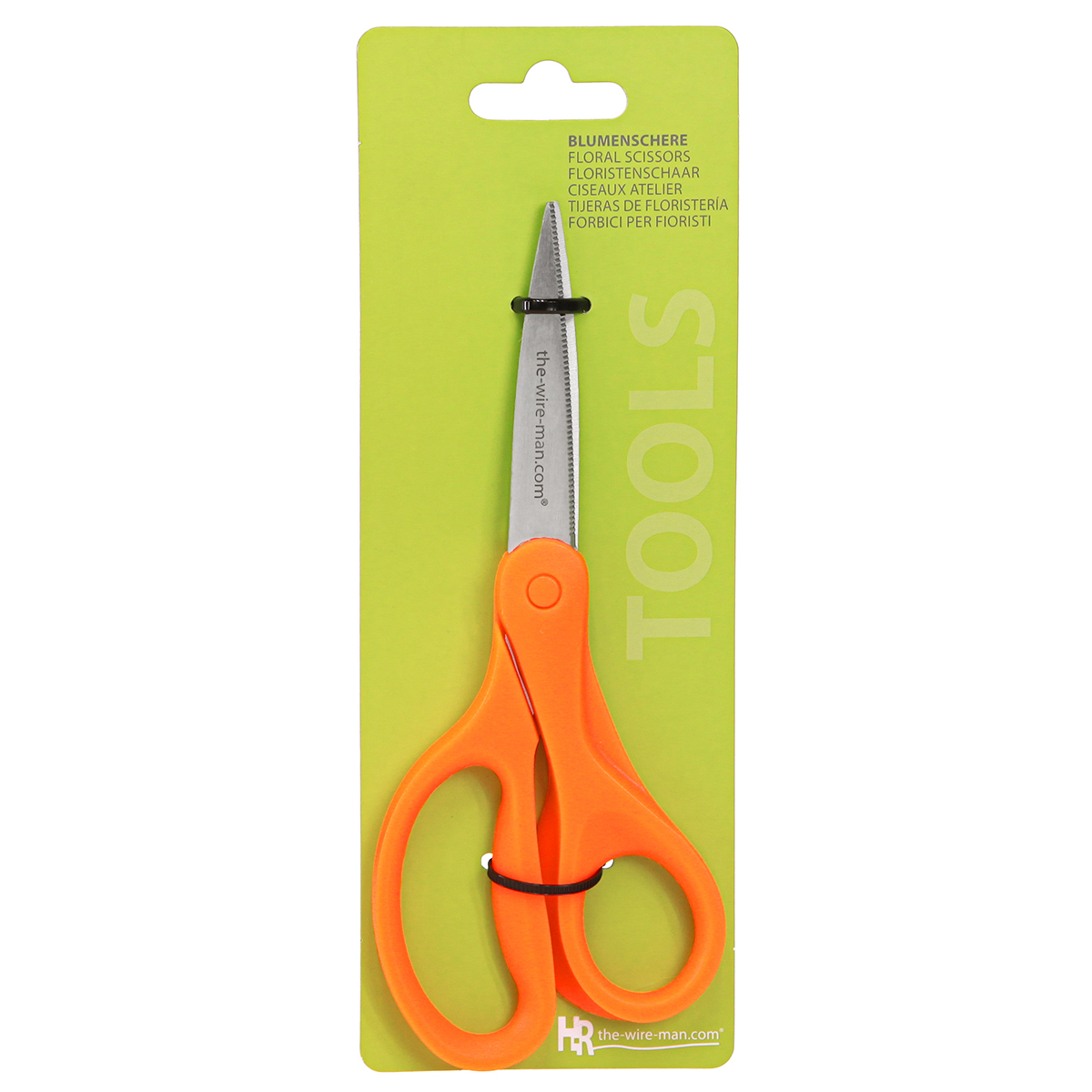 Rozsdamentes acélból készült, narancssárga fogakkal ellátott virágolló - a tökéletes virágkötő eszköz