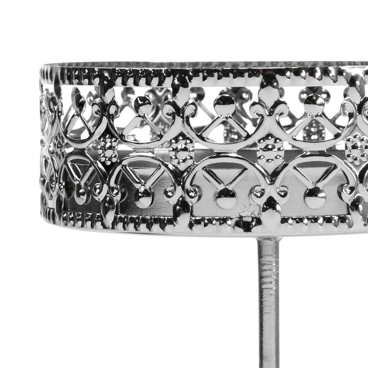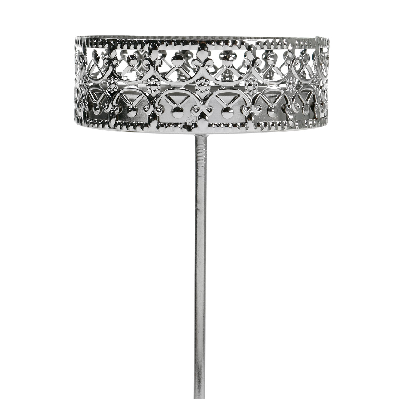 Az ezüst színű gyertyatartók mindegyikének van egy stabil, meglehetősen hosszú tüskéje, amellyel könnyen beilleszthető a különböző felületekbe. Legyen szó virágkompozícióról kerti partin vagy romantikus dekorációs elemként egy esküvőn, a gyönyörű vintage megjelenésű teamécses-tartók számos felhasználási lehetőséget kínálnak.
