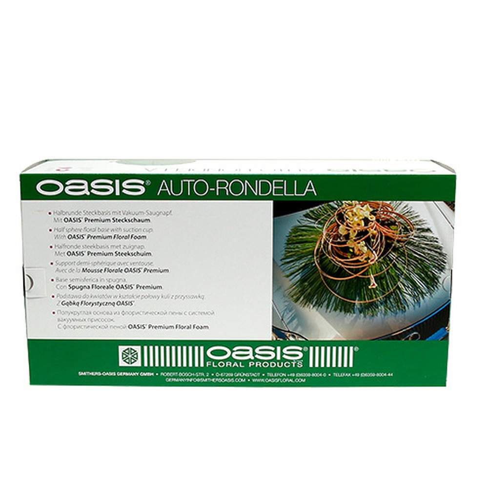 Az OASIS® Auto Rondella átmérője körülbelül 20 centiméter. A magassága körülbelül 13 centiméter. A bedugható tömeg félgömb praktikus 2 darabos készletben kapható. Minden Rondellába már be van építve egy IDEÁLIS golyó, ami a dugómohából készült. Ez is eltávolítható, ha szükséges. Ugyanez vonatkozik az alsó oldalon lévő tapadókorongra is. Egyszerűen nyomja ismét befelé a két hozzáférést, és emelje le a félgömböt. Az elrendezést üvegasztalra is rögzítheti. De enyhén lejtős felületek díszítésére is használható. Az egész nagyon alkalmas egy hajós esküvőre is. Itt nagyon fontos a csúszásmentes dekoráció.