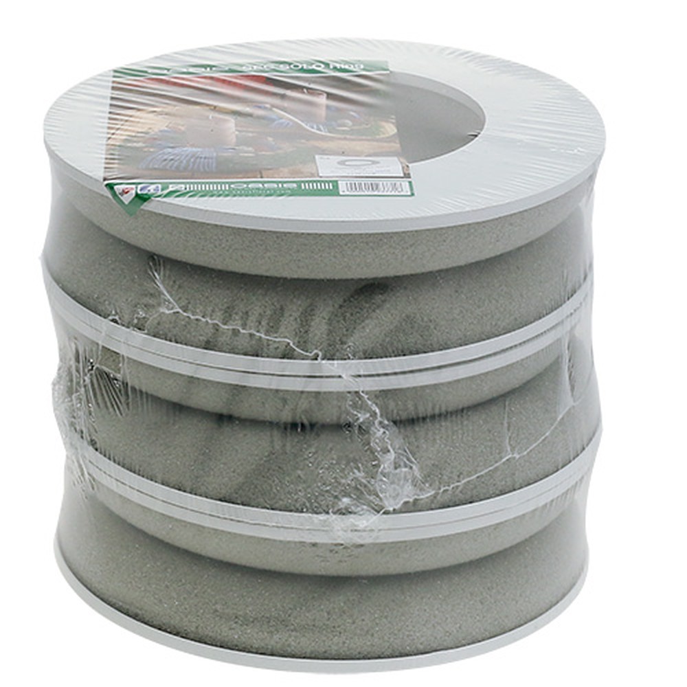 Az OASIS® virágos habgyűrűt 6 darabos készletben szállítjuk. Mindegyik gyűrű teljes átmérője körülbelül nyolc hüvelyk. A belső átmérője körülbelül 11,5 cm. Ráadásul mindegyik koszorúgyűrű körülbelül 3 centiméter magas és 4,5 centiméter széles.