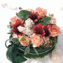 A tálban található kerek virágos hab, az Oasis innovatív asztaldísz és a tartóval ellátott nedves virághab megkönnyíti az izgalmas virágdíszek vagy virágdíszek elkészítését és biztonságos rögzítését urnákhoz és más temetési virágokhoz.