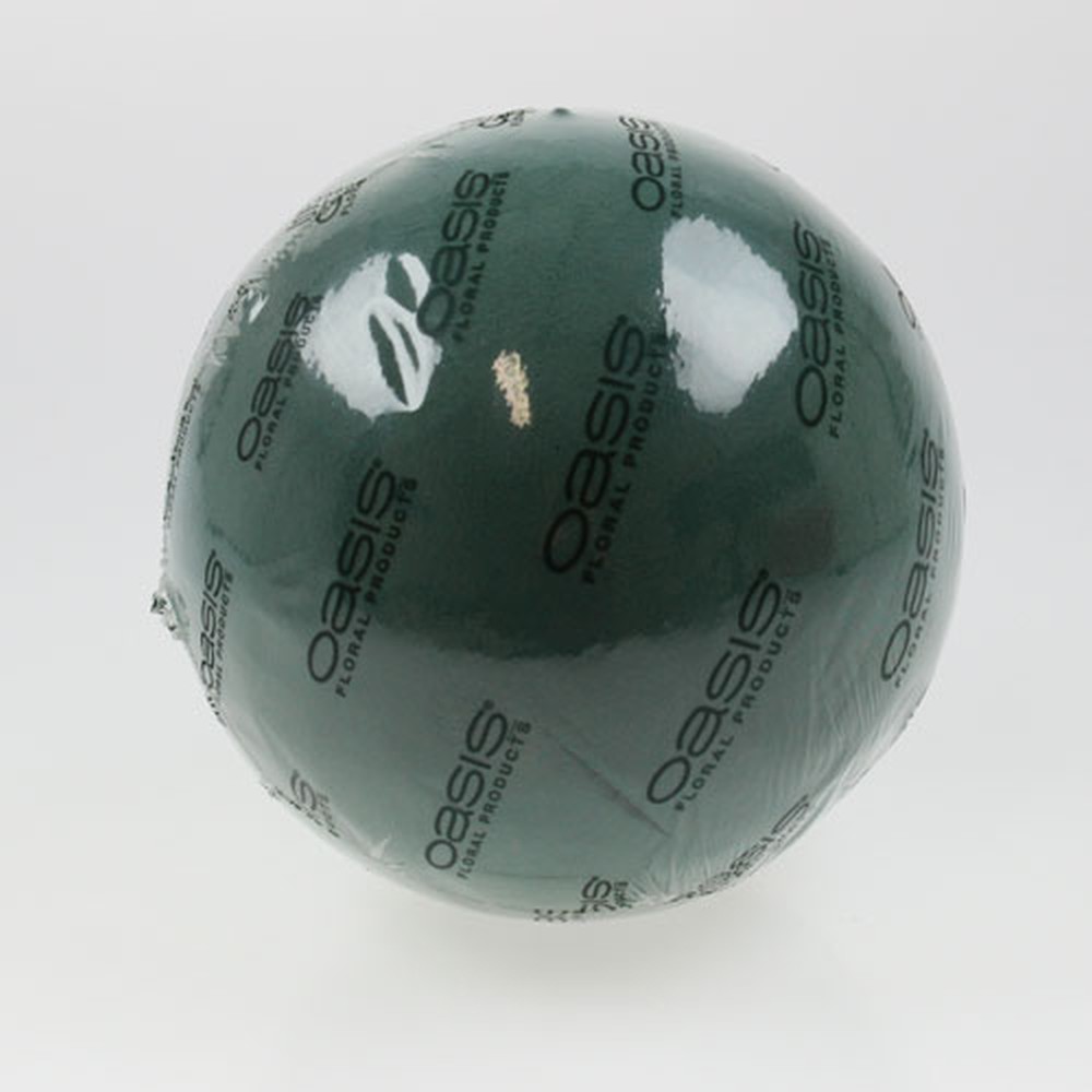 Az OASIS® nagy Ideal Maxlife golyója műanyag fóliába van csomagolva. A nedves virágos hab átmérője körülbelül 25 centiméter. Természetesen nagyon kreatívan megdolgozhatod a labdát késsel. Lehetőség van az arcok kiürítésére vagy kivágására is.