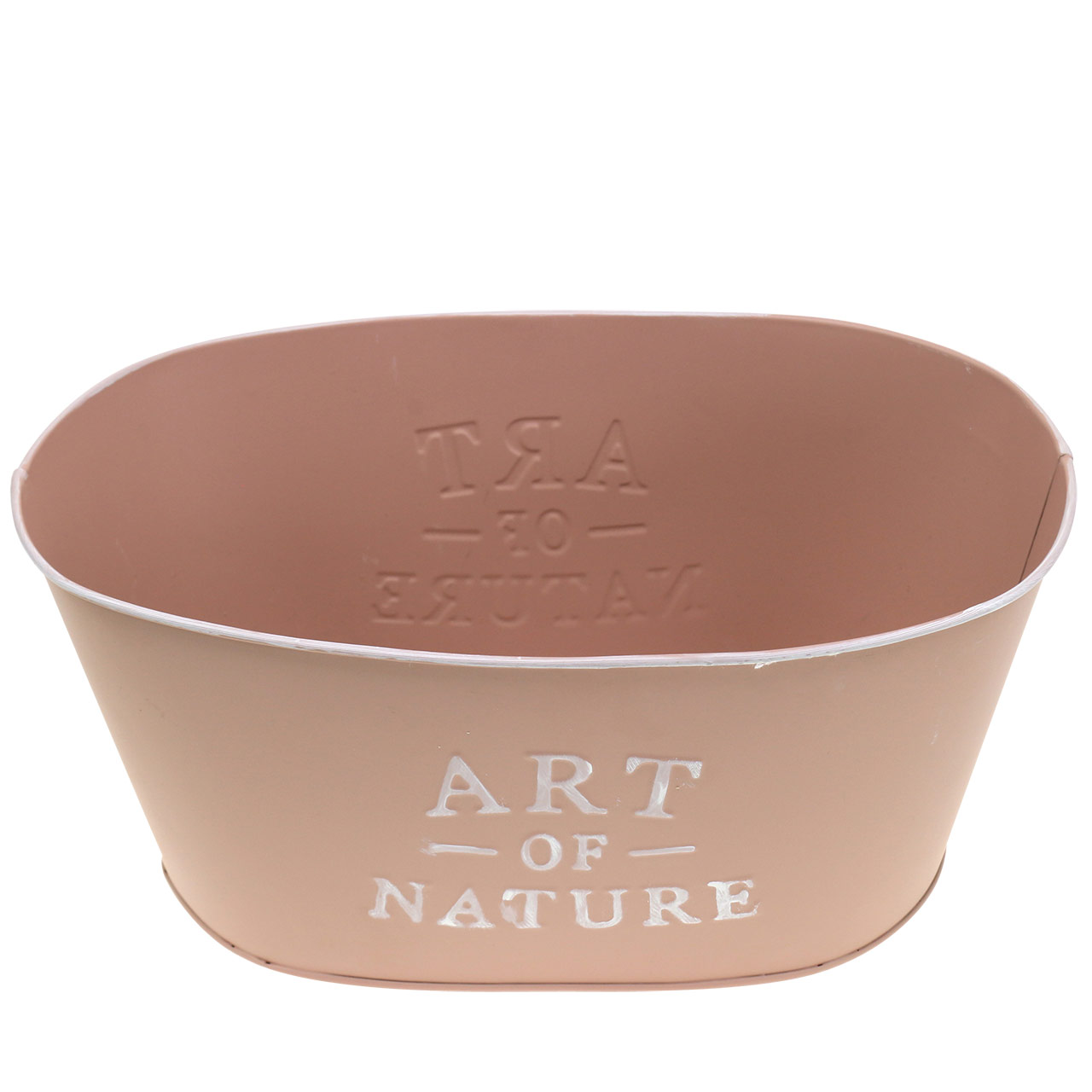 A VIANA antik rózsaszín virágtála ellenállhatatlan vintage esztétikát áraszt, amely egy csipetnyi bájt és eleganciát kölcsönöz minden környezetnek. A fehér, dombornyomott "Art of Nature" felirat stílusosan kiemelkedik a finom órózsaszínből, és kiemeli ennek a fémdísznek az egyedi jellegét. A masszív fémből készült tál tökéletes ültetőgépnek vagy botanikai kincseinek ültetőgépének.