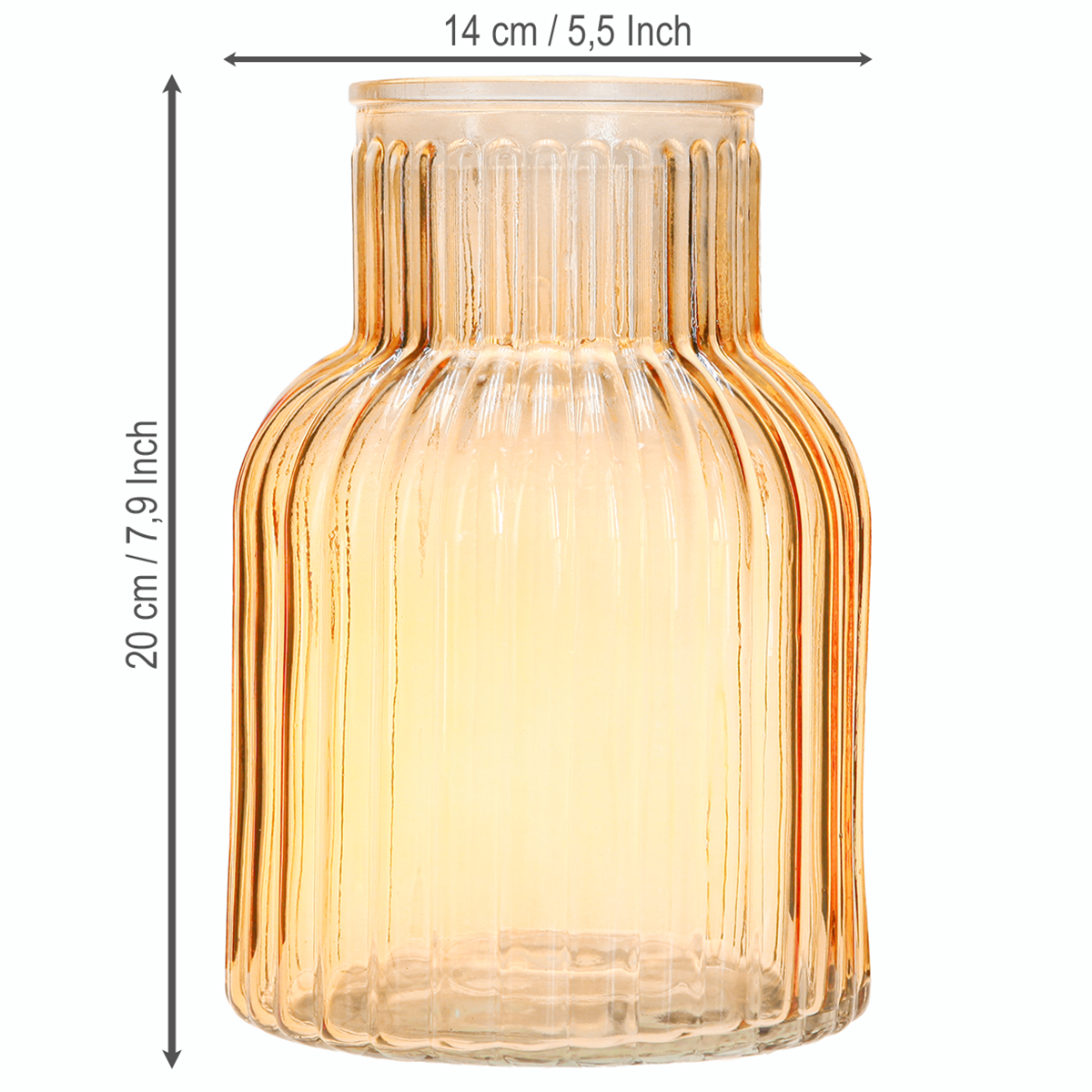 Virágváza üveg narancssárga retro barázdákkal Ø13,5cm H20cm