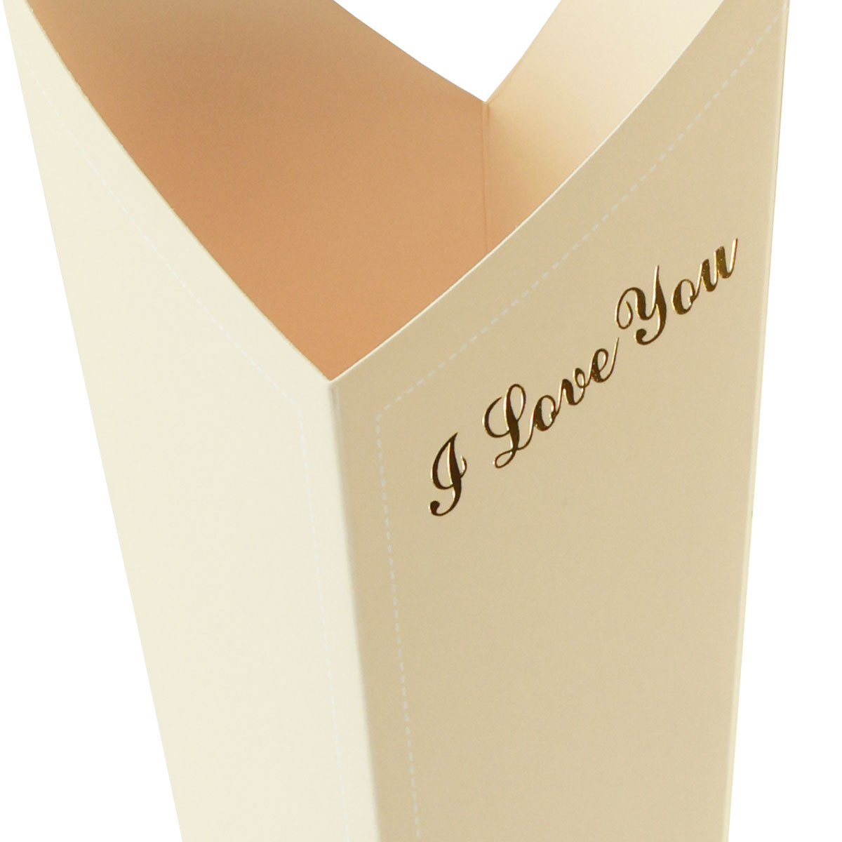 A virágpapír vagy fólia stílusos alternatívájaként 12 db krémszínű karton virágzacskót kapsz. Az „I Love You” virágcsomagolás klasszikus fehér színben is elérhető itt az üzletben.