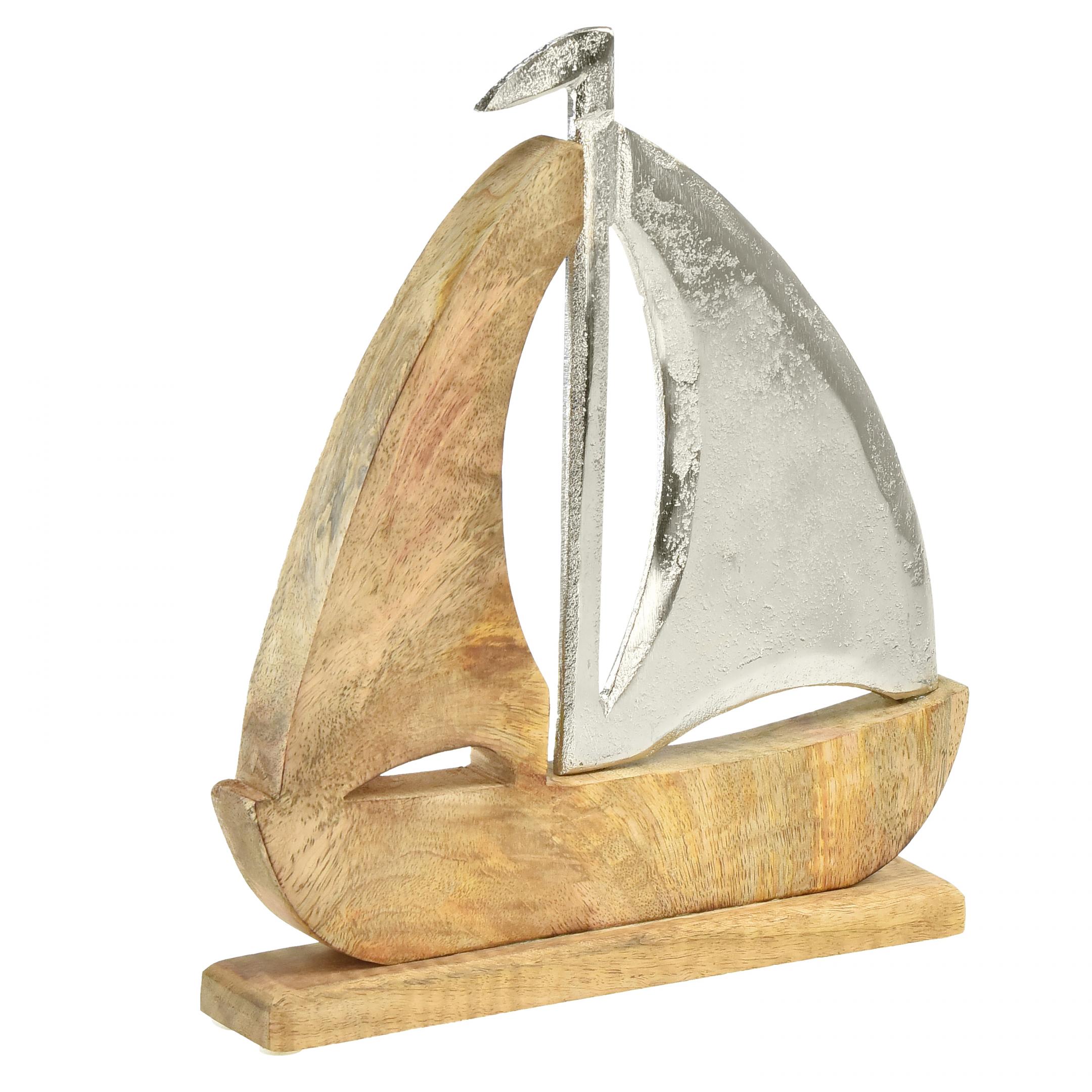Vitorlás hajó dekoráció natúr ezüst mangófa 25,5x4x28,5cm