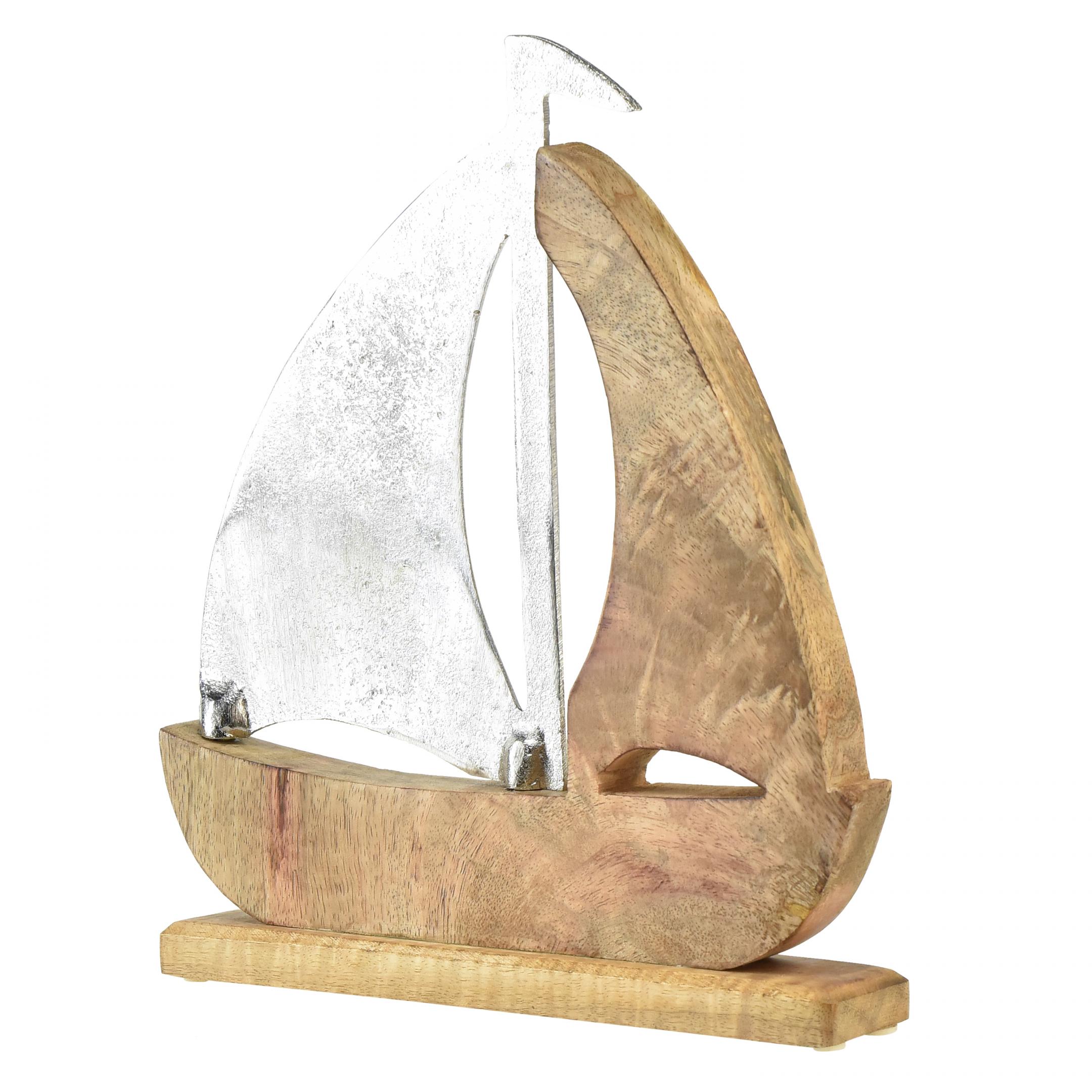 Termék neve: Vitorlás hajó dekoráció natúr ezüst mangófa 25,5x4x28,5cm