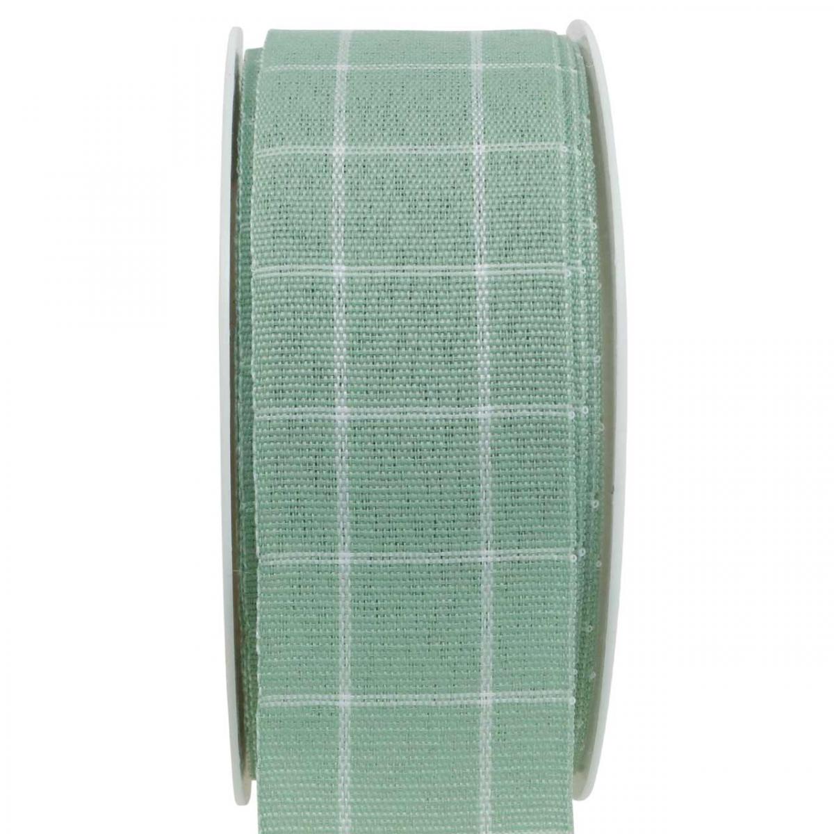 Zöld pasztell kockás ajándék szalag, díszszalag, 35 mm széles, 20 m hosszú