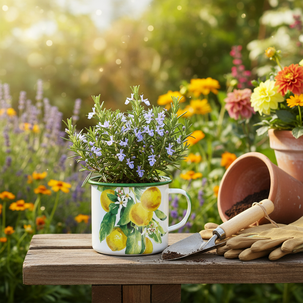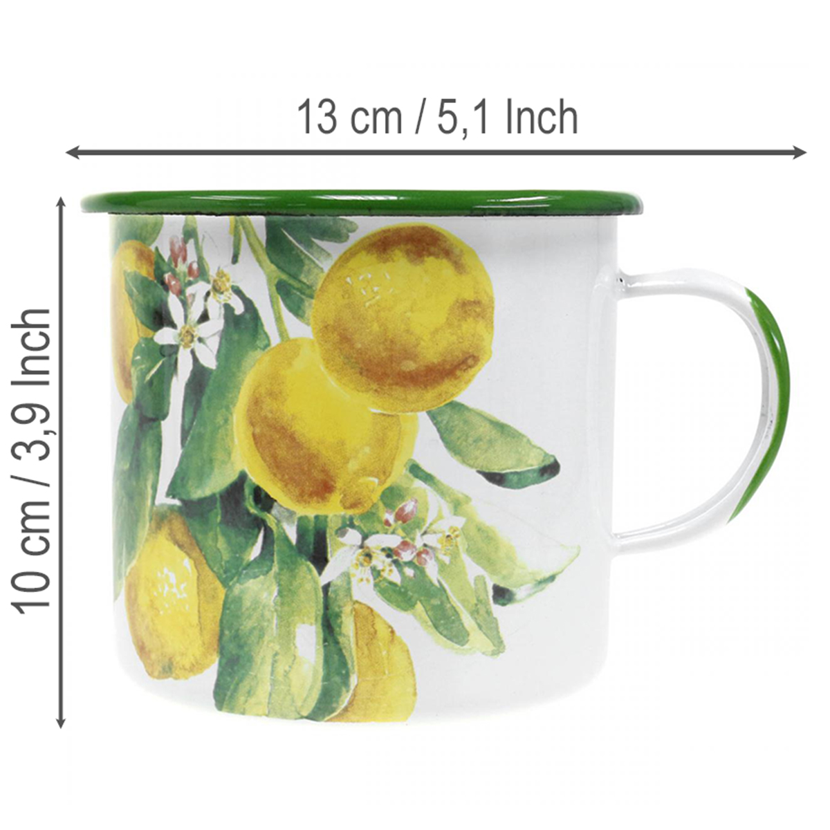 Ebben a zománcozott ültetőben egy kis virágot vagy gyógynövényeket mutathat be nagyon elegáns módon. A citromággal díszített dekoratív csésze kiválóan alkalmas mediterrán cachepotnak!